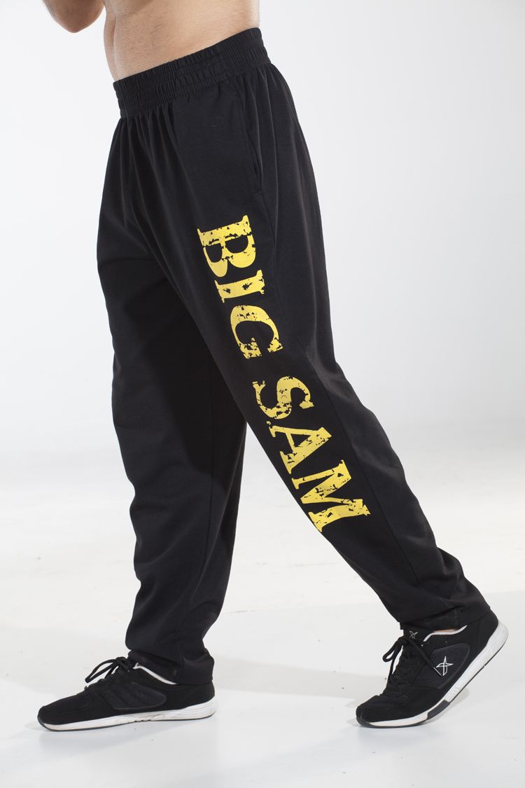 Эти брюки для тренировок за последние годы стали неотъемлемой частью формы настоящих фанатов культуризма. Такая популярность обусловлена тем, что для изделия характерен удобный крой, свобода движений, износостойкость, практичность, долговечность и использование специальных «дышащих» материалов. Фасон брюк удобен для занятий в тренажерном зале, на свежем воздухе и активного времяпрепровождения. Модель универсального чёрного цвета с желтым принтом на левой штанине.