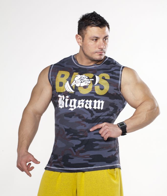 Big Sam – это довольно популярный в мире бренд одежды для спортивных и просто активных людей. Эта майка-безрукавка камуфляжной расцветки с брутальным принтом на груди и спине станет едва ли не самой любимой вещью в вашем повседневном гардеробе. В ней вы не только будете чувствовать себя привлекательным, но и благодаря свободному покрою получите полную свободу движений на тренировке или прогулке.